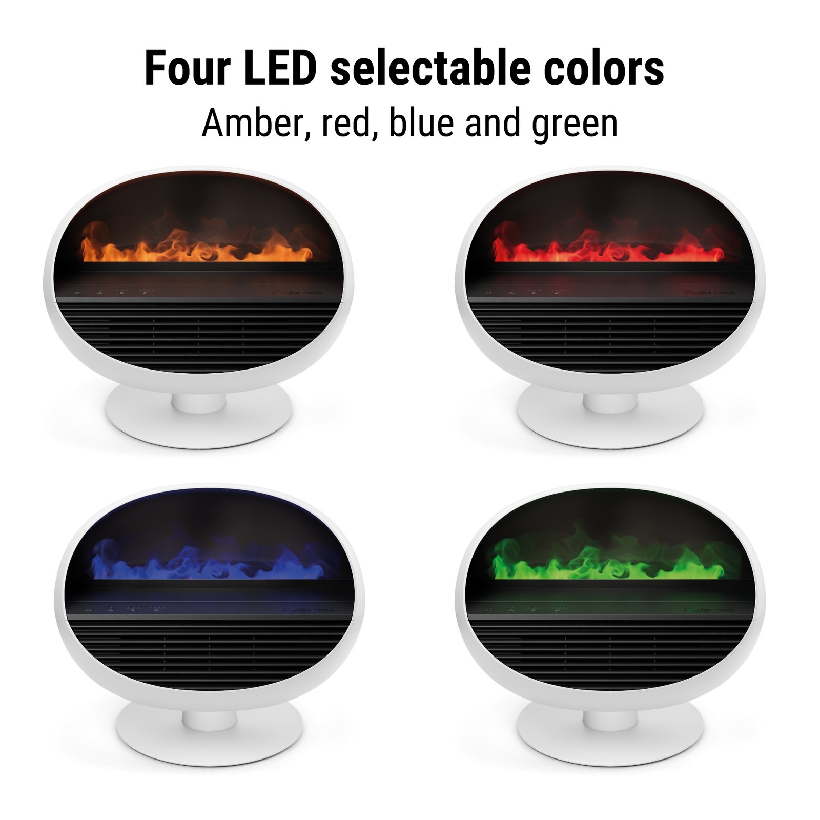 Stadler Form Erik Fan Heater, Aroma Diffuser, And Electric Fireplace 3-in-1, Swiss Design Fireplace Effect, 4 Colours Led, Remote Control, Powerful, Efficient Temperature Control, White 2 Years Warranty + Local Support – www.evo.ae