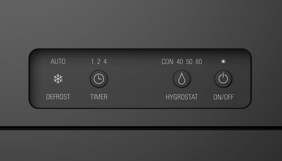 • An integrated hygrostat means the desired humidity can be set to 40%, 50% or 60% on Theo Dehumidifier
